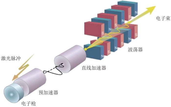 同步輻射光源正在經(jīng)歷從第三代到第四代的跨越。第四代同步輻射光源是基于衍射極限儲存環(huán)技術(shù),亮度將比第三代光源提高幾百倍以上,相干性更好,對世界科技變革的影響難以估量,已成為當前國際競爭的熱點。高亮度光源發(fā)展的另一條技術(shù)路徑—自由電子激光的發(fā)展,使得人類能夠在原子分子水平上動態(tài)認識世界。自由電子激光的原理是通過自由電子和光輻射的相互作用,電子將能量轉(zhuǎn)送給輻射而使輻射強度增大。自由電子激光的發(fā)展將為多學科提供高分辨成像、超快過程探索、先進結(jié)構(gòu)解析等尖端研究手段,必將有效推動諸多學科領域的基礎和應用研究的發(fā)展(圖5)。